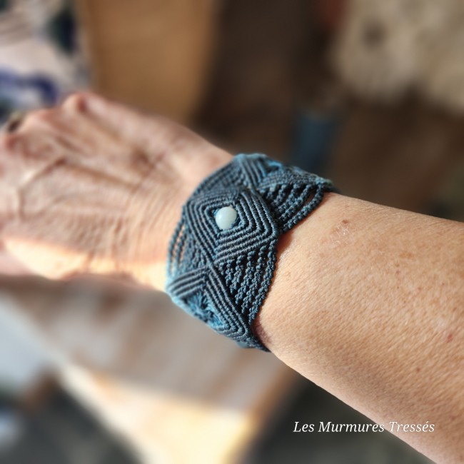Comme un souflle doux autour du poignet, ce bracelet manchette tissé en micr macramé enlace délicatement votre main.