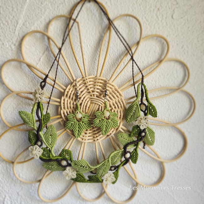 Cette parure fait main en micromacramé réunit 3 créations en parfaite harmonie
