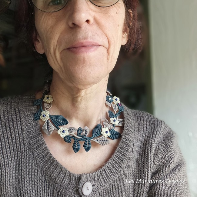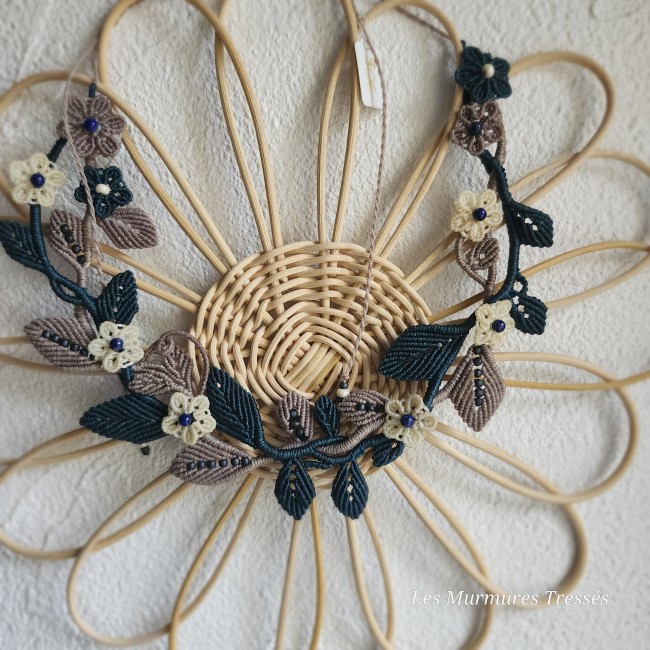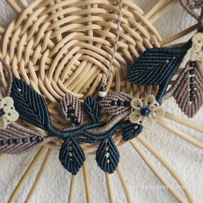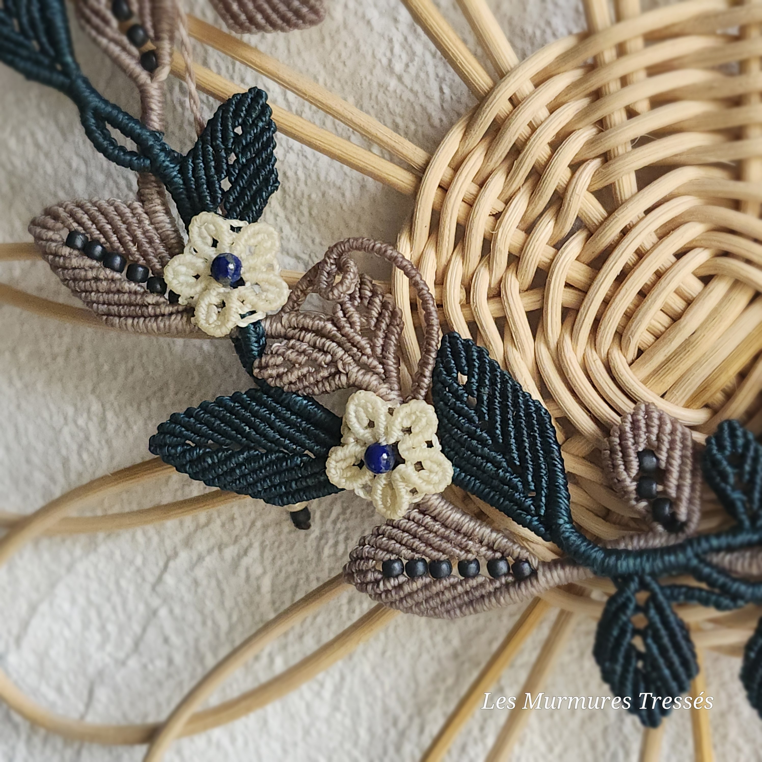 Un collier poétique et raffiné, tissé à la main en micro-macramé.