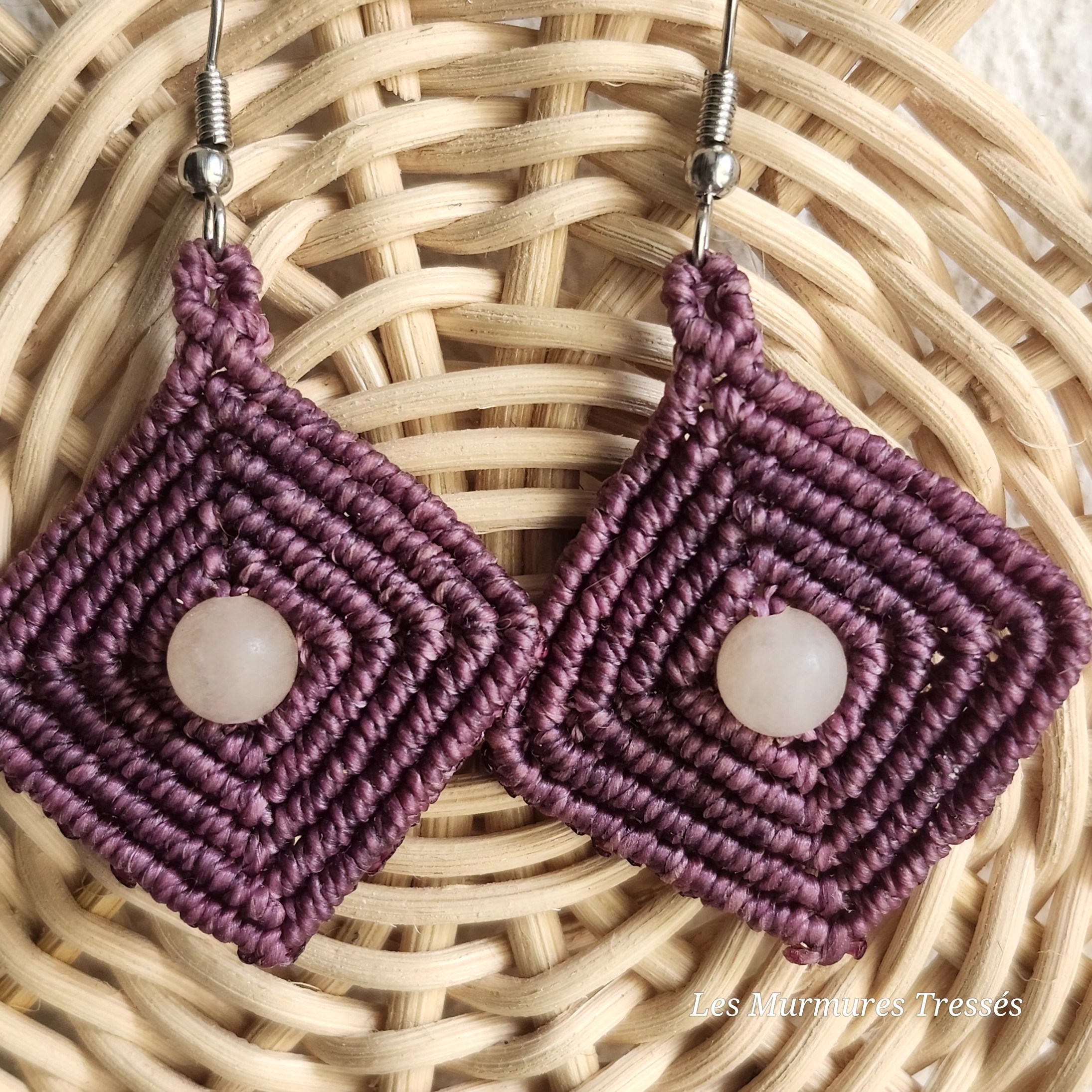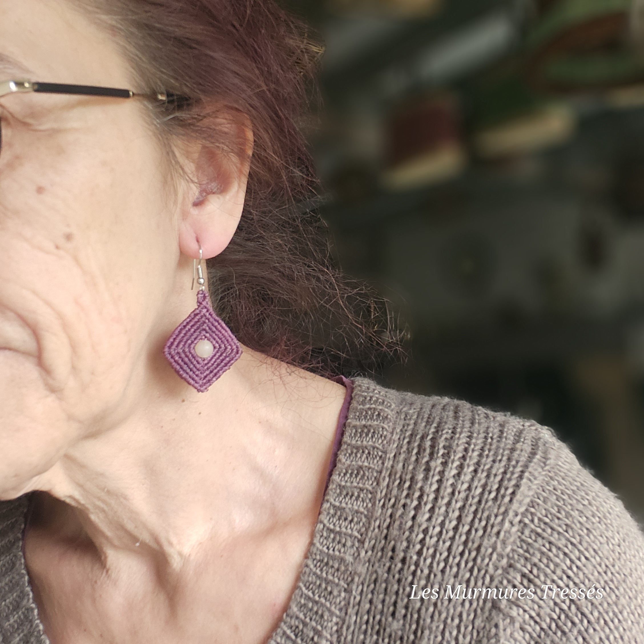Boucles losange roses délicates, ornées d’une perle de Quartz Rose.Une harmonie tendre et féminine, pleine de douceur et d’élégance.