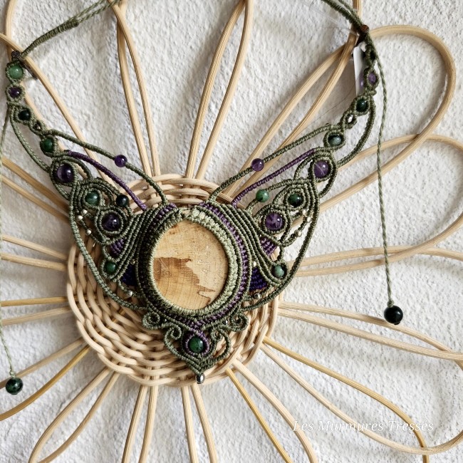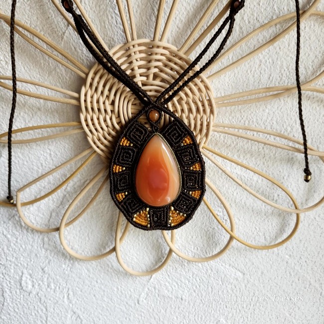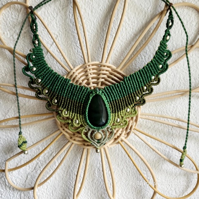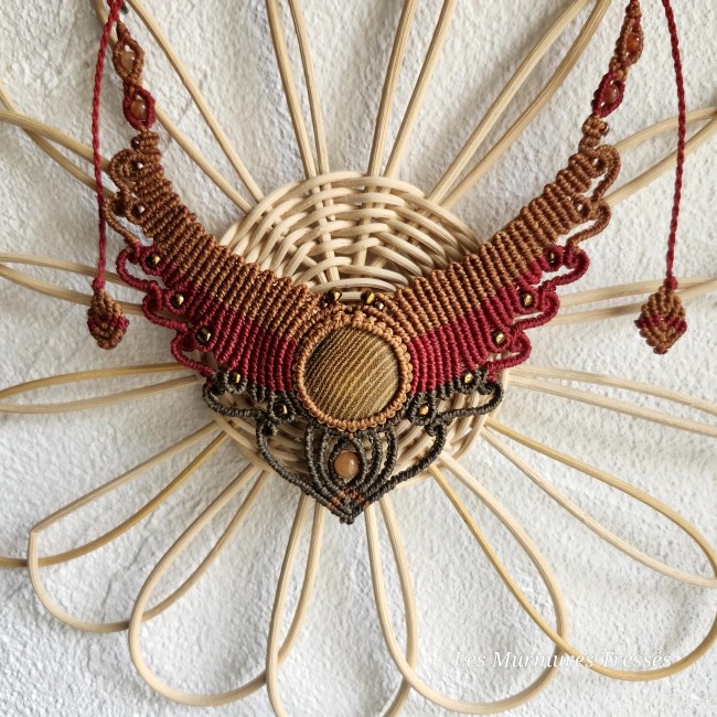 Chaque collier en micro-macramé fait main est une histoire de patience et de poésie.